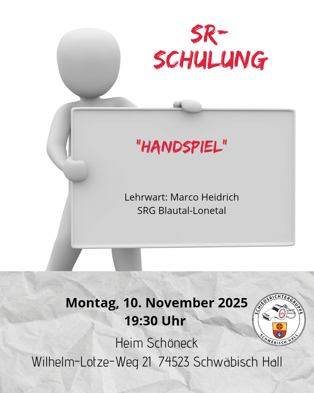 Lehrwart Marco Heidrich von der SRG Blautal-Lonetal wird über das wichtige Thema Handspiel referieren.