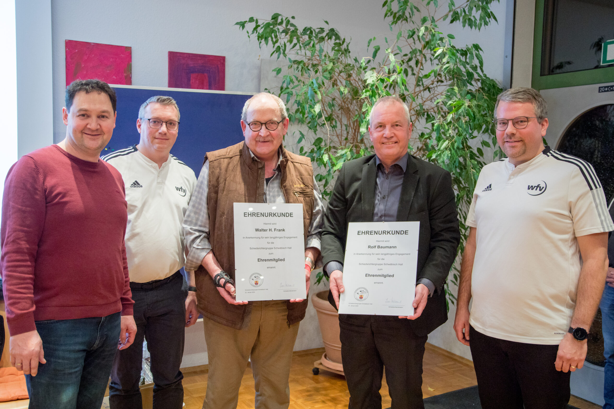 Als Anerkennung für ihr besonderes Engagement und ihre große Unterstützung wurden Rolf Baumann und Walter H. Frank als Ehrenmitglieder der Schiedsrichtergruppe Schwäbisch Hall ernannt.